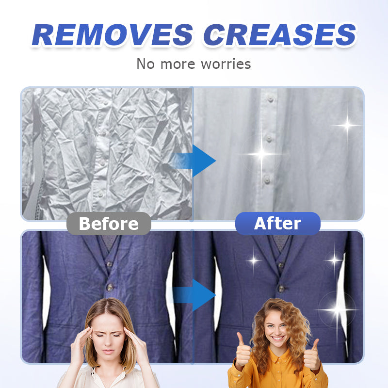 REMOVES CREASES – Instantly smooths out wrinkles, giving your clothes a crisp, freshly pressed look without the need for an iron or steamer. Perfect for quick touch-ups when you're in a hurry.